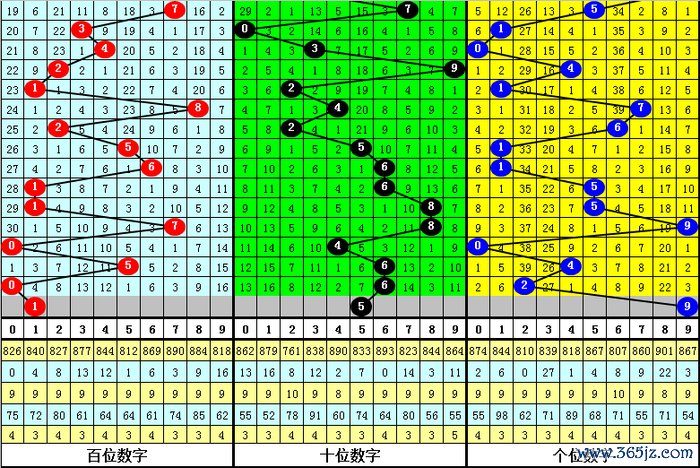 百位上期出现:热号0,该位勾搭十期以热号出现较多,以温号出现较少,当今百位热号有4个:0、1、5、7,本期看好开出热号再次出现,参考号码1。